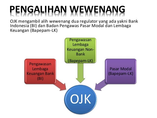 Pengaturan dan pengawasan mengenai kelembagaan bank merupakan tugas ojk di sektor. Tugas Penting OJK. 1. Tugas Utama. Otoritas Jasa Keuangan (OJK) merupakan sebuah lembaga otonom yang bebas dari campur tangan para pihak lain yang memiliki tugas, fungsi, serta wewenang pengaturan, pemeriksaan, pengawasan, dan penyidikan terhadap semua bagian dalam jasa keuangan pada sektor perbankan, pasar modal, serta juga sektor jasa ... Pasal 7 UU tentang OJK memberikan kewenangan kepada OJK dalam melaksanakan tugas pengaturan dan pengawasan di sektor perbankan, yaitu: a. pengaturan dan pengawasan mengenai kelembagaan bank yang meliputi: 1. perizinan untuk pendirian bank, pembukaan kantor bank, anggaran dasar, rencana kerja, kepemilikan, kepengurusan dan sumber daya manusia ... Bank Indonesia (BI) dan Otoritas Jasa Keuangan (OJK) merupakan 2 lembaga yang berbeda. BI lebih berperan dalam menjaga stabilitas rupiah dengan membuat regulasi-regulasi terkait perbankan, sedangkan OJK lebih pada peran pengawasan atas transaksi keuangan di Indonesia. Tugas dan Wewenang OJK. Seperti yang disebutkan sekilas pada pengertian OJK di atas, secara umum OJK memiliki tugas dan wewenang dalam hal penyelenggaraan sistem pengaturan dan pengawasan terhadap industri jasa keuangan di Indonesia. Sesuai dengan pengertian OJK di atas, berikut ini adalah beberapa tugas dan wewenang Otoritas Jasa Keuangan: 1.
