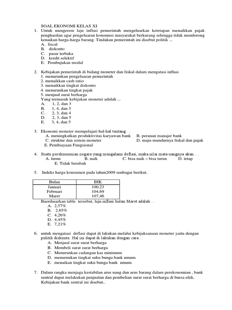 Doc Soal Soal Dan Pembahasan Ekonomi Bab Inflasi Indeks Harga Kebijakan Moneter Dan Kebijakan Fiskal Erawati Rosadi Academia Edu