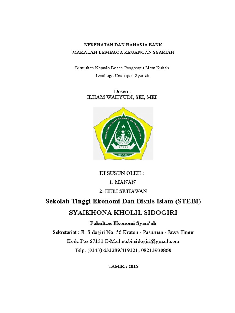 View Kesehatan dan Rahasia Bank.docx from ECONOMI AN 101, 238 at Alauddin Islamic State University. KATA PENGANTAR Bismillahirrahmanirrahim Puji syukur penulis panjatkan atas kehadirat Allah