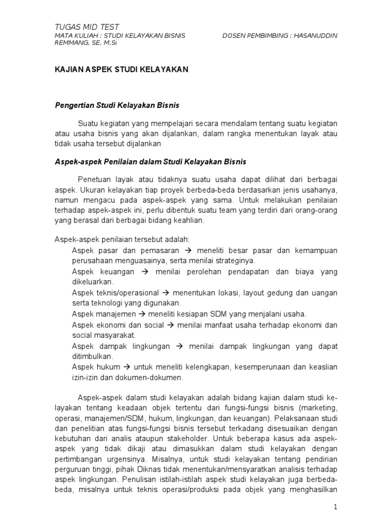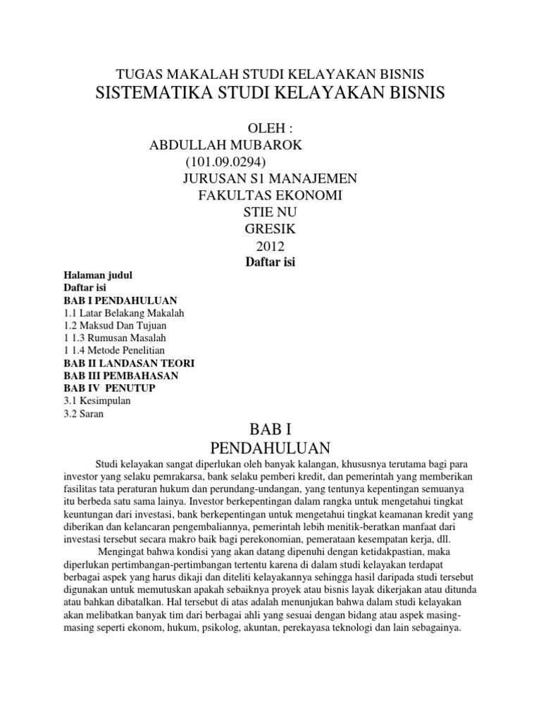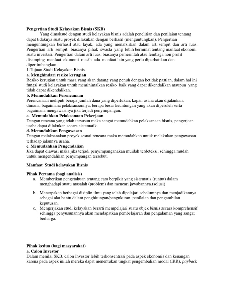 Full PDF Package Download Full PDF Package. This Paper. A short summary of this paper. 34 Full PDFs related to this paper. Read Paper. STUDI KELAYAKAN BISNIS.