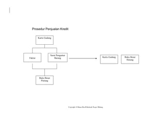 Sistem Penjualan Kredit - ini blog saya SISTEM AKUNTANSI PENJUALAN KREDIT A. Unit Organisasi yang terkait Menurut Mulyadi dalam bukunya Sistem Akuntansi, unit organisasi yang terkait dalam sistem akuntansi penjualan kredit yaitu: Fungsi Penjualan Fungsi ini bertanggung jawab untuk menerima order dari pelanggan, mengedit order dari pelanggan, meminta otorisasi kredit, menentukan tanggal pengiriman barang.