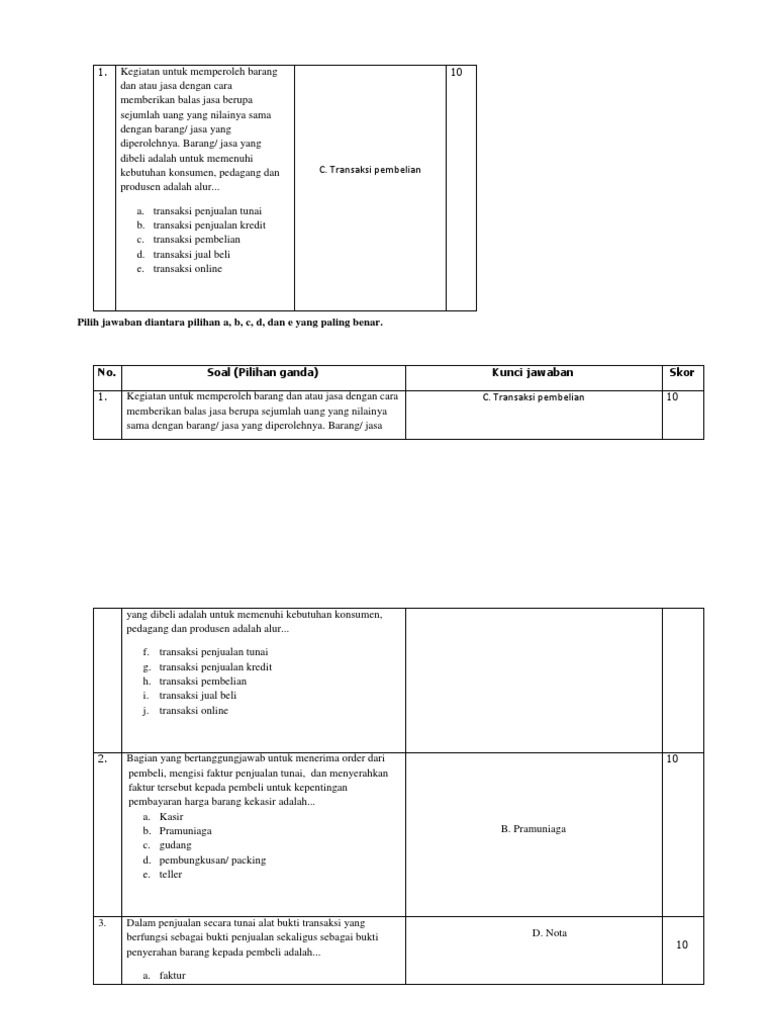 Soal Alur Transaksi | Education Quiz - Quizizz alur transaksi penjualan kredit dengan disertai bukti transaksi, dapat digambarkan sebagai bukti diawal dengan ... answer choices permintaan pembeli yang dibuktikan dengan surat permintaan (order) negosiasi dibuktikan dengan bukti pertemuan berupa notulen (catatan kesepakatan sementara) yang memuat kesepakatan-kesepakatan Inilah Alur Pembelian Barang, Dan Cara Praktis Mencatatnya Untuk alur transaksi pembelian pertama ini dilakukan pada bagian penjualan, maupun bagian produksi yang meminta pengajuan barang. Dimana permintaan ini harus memenuhi syarat yaitu memprediksi barang kebutuhan konsumen, penelitian pasar, hingga perhitungan stok barang. Administrasi Transaksi Kelas Xi Sem 1- Kd 02 Alur Transaksi Transaksi penjualan barang juga dapat dilakukan secara tunai/kredit. Berikut ini alur penjualan tunai maupun alur penjualan kredit. Secara umum, kegiatan penjualan dilakukan pada suatu lokasi yang memiliki prospek atau masa depan yang baik bagi usaha penjualan. Langkah awal yang dilakukan seorang penjual untuk menentukan lokasi strategis sbb: 1.
