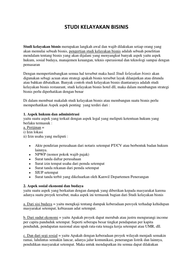 Contoh Studi Kelayakan Bisnis Skala Kecil Sampai Besar - Qwords Studi kelayakan bisnis adalah hal yang penting, jika Anda mengalami kesulitan kami memiliki contoh studi Namun ada beberapa hal penting sesuai dengan jenis bisnis yang perlu kita masukan kedalam proposal studi kelayakan bisnis, berikut contoh studi kelayakan bisnis sederhana