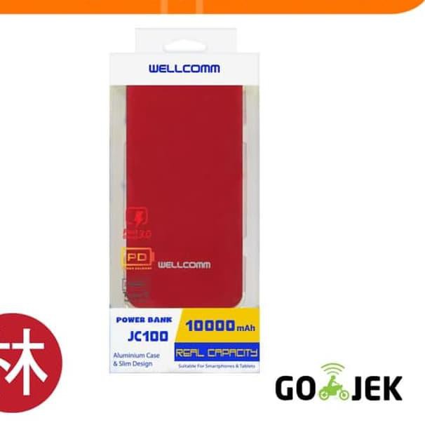 Jual Power Bank Wellcomm JC100 10000mAh Quick Charge 3.0 ... Power Bank Wellcomm JC100 10000mAh Spesifikasi : 1. Kapasitas 10000mAh 2. Battery : Lithium Polymer 3. Fast Charge 3.0 4. Real Capacity 5. Support USB PD (Power Delivery) Type-C 6. Dual Output Port (USB 3A & Type-C 3A) 7. Dual Input Port (Micro 2A & Type-C 2A) 8. Menggunakan IC yang bagus sehingga bisa menghasilkan Output sekitar 65% dari total ...