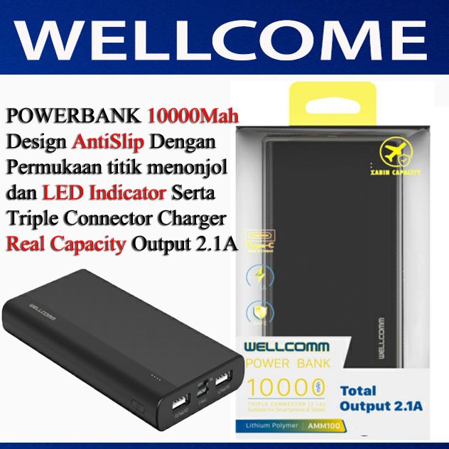 24 Power Bank Wellcomm 10000mah - Info Uang Online Powerbank wellcomm af100 10000mah. Xiomi power bank dengan kapasitas 10000 mah. Power bank terdiri dari beragam kapasitas. 10 april 2018. Didesain sangat ramping dan ringan membuatnya dapat dibawa kapan. Dibekali kapasitas 10000mah mampu mengisi gadget 3 5 kali dari kondisi full charged. Pengiriman cepat pembayaran 100 aman.