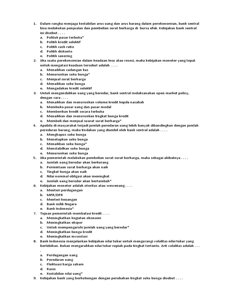 Pengaruh Kenaikan Tingkat Suku Bunga Terhadap Kinerja Bank... Adanya kenaikan tingkat suku bunga pada bank-bank umum akan mempengaruhi peran intermediasi dunia perbankan dalam perekonomian Indonesia. Bank-bank umum (konvensional) dalam operasionalnya sangat tergantung pada tingkat suku bunga yang berlaku, karena keuntungan... (DOC) SOAL dan JAWABAN AKUNTANSI KELAS... - Academia.edu Kebijakan bank yang berhubungan dengan perubahan tingkat suku bunga disebut…. A. politik pasar terbuka B. politik diskonto C. politik pembatasan kredit D. politik uang ketat E. politik cadangan kas Kunci : B 100. Kebijakan fiskal dan moneter merupakan kebijakan dari segi …. Moneter dan Fiskal | History Quiz - Quizizz Kebijakan bank yang berhubungan dengan perubahan tingkat suku bunga disebut … answer choices. politik cadangan kas. Bank sentral bisa melakukan penjualan dan pembelian surat berharga di bursa efek. Kebijakan bank sentral ini disebut … Bunga Bank - Bunga Simpanan, Pinjaman, dan Contohnya Suku bunga mengambang adalah suku bunga yang selalu berubah mengikuti suku bunga di pasaran. Dengan suku bunga flat, kamu sudah mengetahui berapa nominal yang harus dibayarkan setiap bulan dalam kurun Kebijaksanaan pemerintah dalam menentukan tingkat suku bunga.