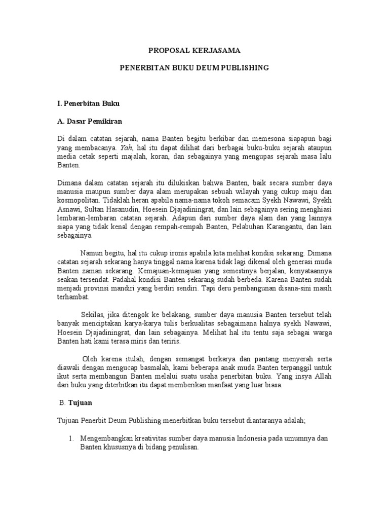 PDF Download Contoh Proposal Kerjasama Dengan Bank PDF (15.00 ... Download Contoh Proposal Kerjasama Dengan Bank PDF (15.00 MB) - SamPDF SamPDF Cara Membuat Proposal Penawaran Produk Halo Teman-teman, Tips Bisnis dari Satoeasa hadir lagi. Nah di episode perdana tahun 2021 ini kami mengulas tentang bagaimana cara membuat proposal penawaran produk. Semoga video Cara Membuat Proposal Penawaran Produk ini Contoh Proposal Surat Penawaran Supporting Promotion Ke ... Contoh surat penawaran kerjasama dengan bank contoh seputar. Promotion seperti konstruksi billboard papan reklame, neon box, branding painting, baliho,. Proposal penawaran kerjasama supporting promotion ( indoor & out door media ) . Pembayaran dengan kartu kredit (bca dan mandiri) . Download Contoh Proposal Kerja Sama [Word, PDF] Selain itu, proposal dapat membantu kamu menyusun rencana bisnis sesuai dengan hasil di lapangan. Berikut ini adalah contoh struktur pembuatan proposal kerja sama untuk diperhatikan. 1. Keuntungan Bagi Perusahaan Partner. 2. Keuntungan berupa hubungan kerja sama untuk memperluas jaringan bisnis. 1. Surat Pengantar. Ini Tips Membuat Proposal Kerjasama Bisnis ... - asriman.com Terlebih, banyak contoh proposal kerjasama bisnis properti yang mereka pelajari selama ini, ternyata tidak sesuai dengan yang diharapkan para investor. Bagi developer yang masih belum menguasai pembuatan proposal kerjasama bisnis properti, berikut beberapa tips yang bisa dijadikan petunjuk: Pahami Trust, Safety dan Profiability