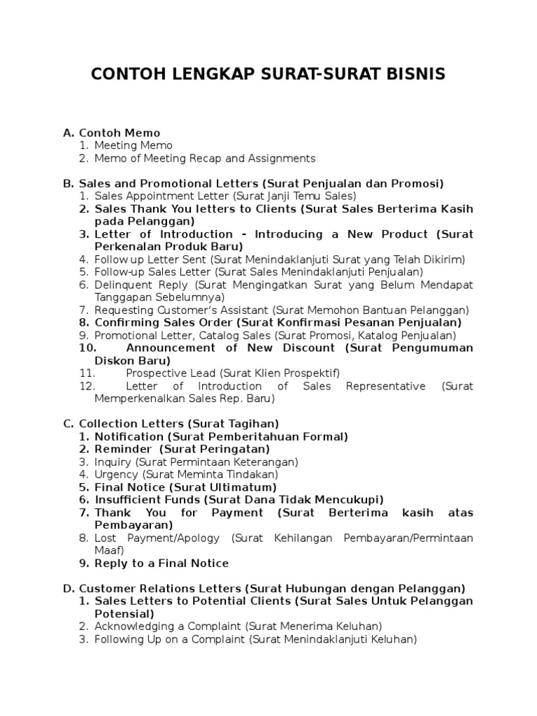 Jenis-jenis Surat Bisnis Dalam Bahasa Inggris, Inquiry ... Jenis-jenis surat bisnis dalam bahasa inggris Inquiry Letters atau Surat permintaan informasi, Offering/Sales Letters dan banyak lagi. Inquiry, Offering, Ordering, Execution, Complains, Remittance, Collections