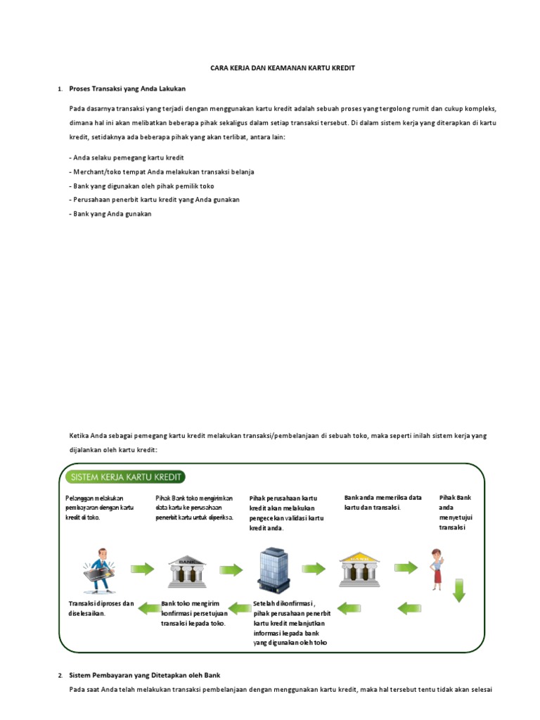 Pihak-Pihak Yang Terlibat Dalam Kartu Kredit Keuntungan ... Transaksi yang menggunakan kartu kredit melibatkan berbagai pihak. Masing-masing pihak satu sama lain terikat perjanjian baik mengenai hak maupun kewajibannya. Pihak-pihak yang terlibat akan membentuk suatu sistem kerja kartu kredit itu sendiri. Adapun pihak yang terlibat dalam sistem kerja kartu kredit adalah : a. Kartu Kredit Adalah Salah Satu Alat Pembayaran, Ini Cara ... Sistem Kerja Kartu Kredit Agar bisa mempunyai kartu kredit, seorang calon pengguna kartu kredit harus bisa mengajukan permohonan aplikasi kartu kredit terlebih dahulu kepada pihak bank penerbit kartu kredit. 28 Sistem Kerja Kartu Kredit - Info Uang Online Sistem kerja kartu kredit. Seperti yang kita ketahui sistem pembayaran secara online dewasa ini sangat digandrungi oleh masyarakat. Kartu kredit pengertian jenis ciri fungsi syarat cara kerja keuntungan kerugian untuk pembahasan kali ini kami akan mengulas mengenai kartu kredit yang dimana dalam hal ini meliputi. Kartu kredit pengertian jenis ... Pengertian Kartu Kredit, Fungsi, Jenis, Cara Kerja & Pengajuan Cara atau sistem kerja kartu kredit yaitu bekerjanya kartu kredit dari mulai penerbitan kartu kredit, transaksi pembayaran menggunakan kartu kredit atau penarikan tunai hingga transaksi pembayaran oleh bank dengan melibatkan pihak yang berkepentingan. Sistem kerja dari kartu kredit bisa dijelaskan sebagai berikut ini: