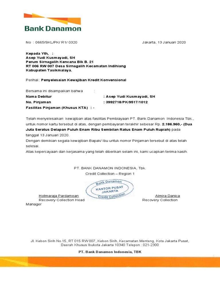 Nomor Telepon Bank Danamon Pusat dan KC Serta Alamatnya ... Berdiri sejak 1956, Bank Danamon yang awalnya bernama Bank Kopra Indonesia berhasil menjadi bank pelopor yang melayani penukaran mata uang asing di Indonesia. Hingga kini, Bank Danamon memiliki lebih dari 1.600 cabang. Berikut adalah daftar alamat dan nomor telepon Bank Danamon. Bank Danamon Jakarta - Kebon Sirih - alamatpenting.com Bank Danamon Jakarta – Kebon Sirih. Alamat : Jl. Kebon Sirih No. 15, Jakarta Pusat 10340 No. Telepon : 021-2300605 No. Fax : 021-2300730. Hello Danamon – Layanan Perbankan 24 jam : 1-500-090 Sewa gedung EX Bank Danamon - lamudi.co.id Bangunan Sewa gedung EX Bank Danamon Jl. Kebon Sirih No. 15. Central Jakarta, DKI Jakarta, Indonesia 10340 Kebon Sirih, Jakarta Pusat Overview Fasilitas Lokasi rincian Ruangan (jumlah total) 10 Bangunan (m²) 7320 Lahan (m²) 2936 Jumlah Lantai 8 Tersedia sejak 23/09/20 Deskripsi Sewa gedung EX Bank Danamon area Jakarta Pusat.