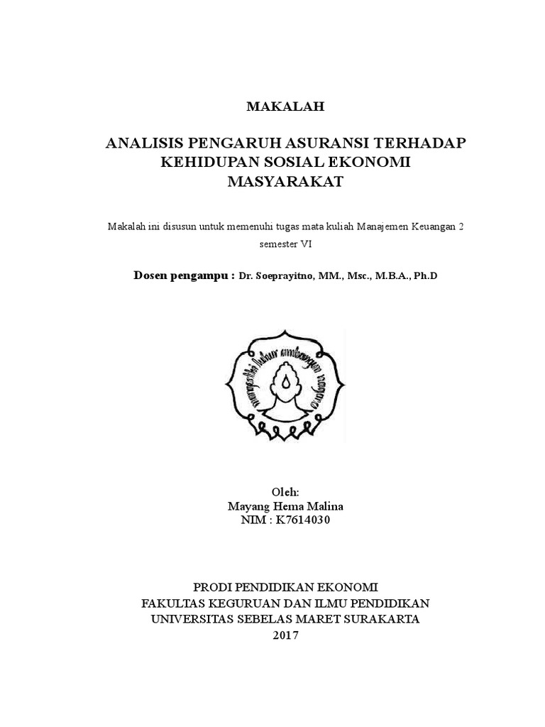 Hesti Avriani: Asuransi Terhadap Kehidupan Sosial-Ekonomi asuransi mempunyai beberapa peran dalam kegiatan sosial-ekonomi di negara kita, seperti misalnya melengkapi persyaratan kredit, mempercepat laju pertumbuhan ekonomi, mengurangi biaya modal, menjamin kestabilan organisasi/perusahaan, mempertimbangkan besarnya biaya insiden dengan cara yang lebih pasti, mendorong usaha pencegahan, dan membantu …