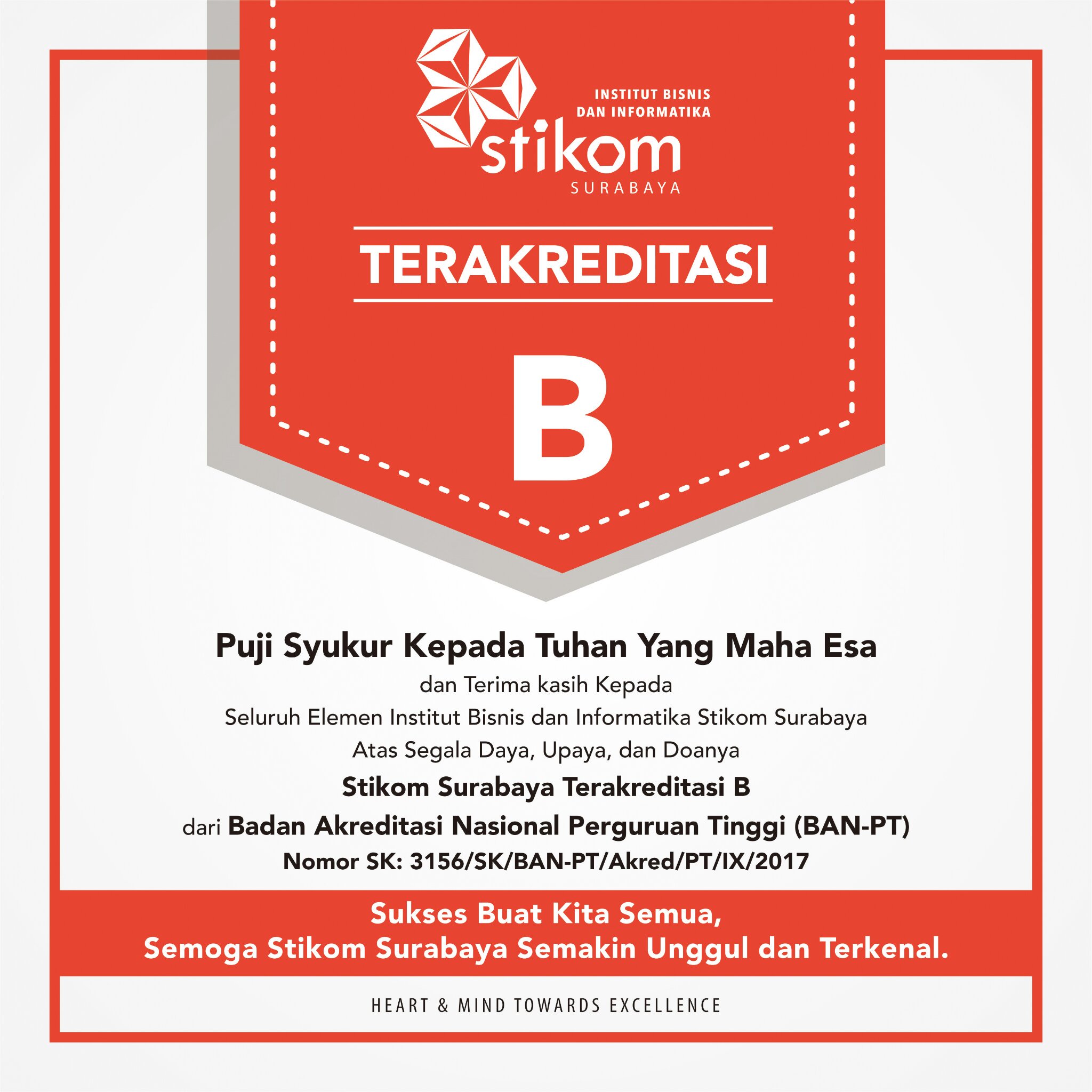 Universitas Dinamika | Beranda Website Universitas Dinamika, yang dulunya STIKOM Surabaya, Institut Bisnis dan Informatika Stikom Surabaya, berkembang menjadi sebuah lembaga pendidikan yang berstatus perguruan tinggi dengan nama Universitas Dinamika. Memiliki 3 fakultas yang didalamnya terdapat 9 Program Studi. S1 Teknik Komputer Menetapkan peringkat akreditasi Program Studi Sarjana Sistem Komputer Institut Bisnis dan Informatika Stikom Surabaya Terakreditasi Peringkat B (Baik). Peringkat akreditasi sebagaimana yang disebutkan pada diktum pertama berlaku selama 5 (lima) tahun. Keputusan ini berlaku selama proses pengelolaan dan penyelenggaraan program akademik di ... Perpustakaan Stikom Surabaya Perpustakaan Institut Bisnis dan Informatika Stikom Surabaya merupakan salah satu fasilitas bagi mahasiswa Stikom surabaya untuk mencari informasi dan memperoleh ilmu pengetahuan dari buku buku yang tersedia sehingga mahasiswa tidak akan kesulitan mencari referansi saat mengerjakan tugas mata kuliahnya atau tugas akhir semesternya. karena juga tersedia banyak sekali hasil karya alumni tentunya ... Wisuda Ke 39 Institut Bisnis dan Informatika Stikom Surabaya Wisuda Sarjana dan Diploma Ke 39 Institut Bisnis dan Informatika Stikom Surabaya.Live Streming : : ...