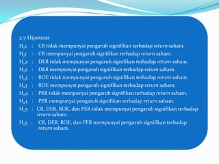ANALISIS PENGARUH HARGA SAHAM, VOLUME PERDAGANGAN, DAN ... menyelesaikan skripsi dengan judul “ANALISIS PENGARUH HARGA SAHAM, VOLUME PERDAGANGAN, DAN VARIANSI RETURN SAHAM TERHADAP BID ASK SPREAD PADA MASA SEBELUM DAN SESUDAH STOCK SPLIT” (Studi Kasus Pada Perusahaan Manufaktur yang Listing di BEI pada Periode 2003-2009). Skripsi ini disusun dalam rangka 41 skripsi tentang return saham - Bisnis Untung Jan 11, 2022 · 41 skripsi tentang return saham. sedangkan pada NPM terdapat positif dan tidak signifikan terhadap return saham, dan EPS dan PER mempunyai pengaruh yang positif dan signifikan terhadap return saham perusahaan manufaktur sektor Food and Beverages. Kata kunci : return on assets, net profit margin, earning per share, price earning ratio, return saham.